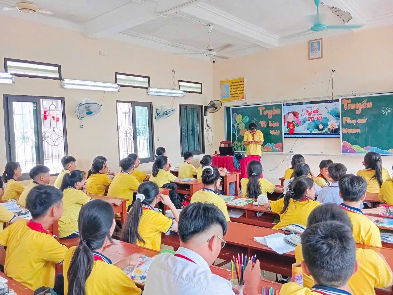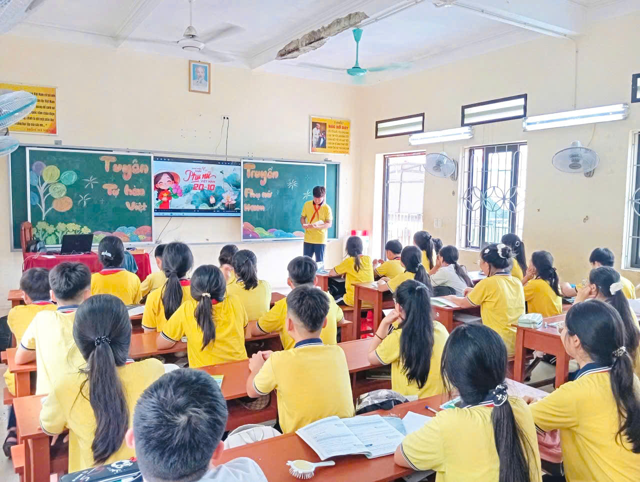Hòa chung trong không khí rộn ràng ấy, thầy và trò trường THCS Mỹ Đức tổ chức các hoạt động tuyên truyền, chào mừng Ngày Phụ nữ Việt Nam 20/10, nhằm tôn vinh những người phụ nữ Việt Nam.