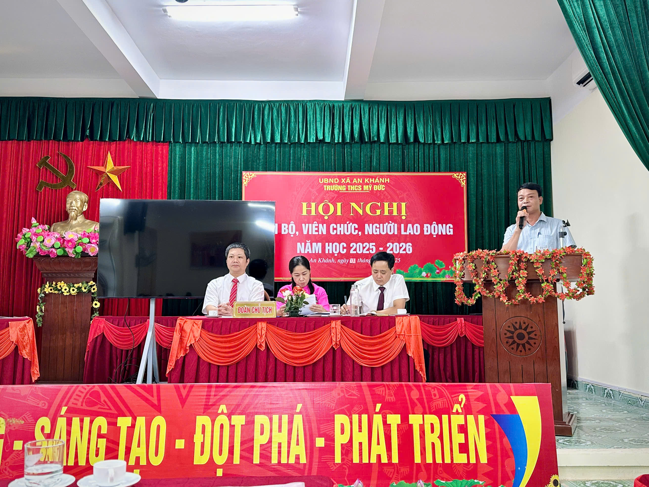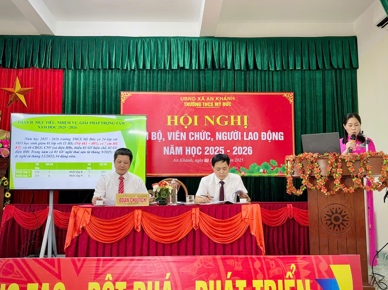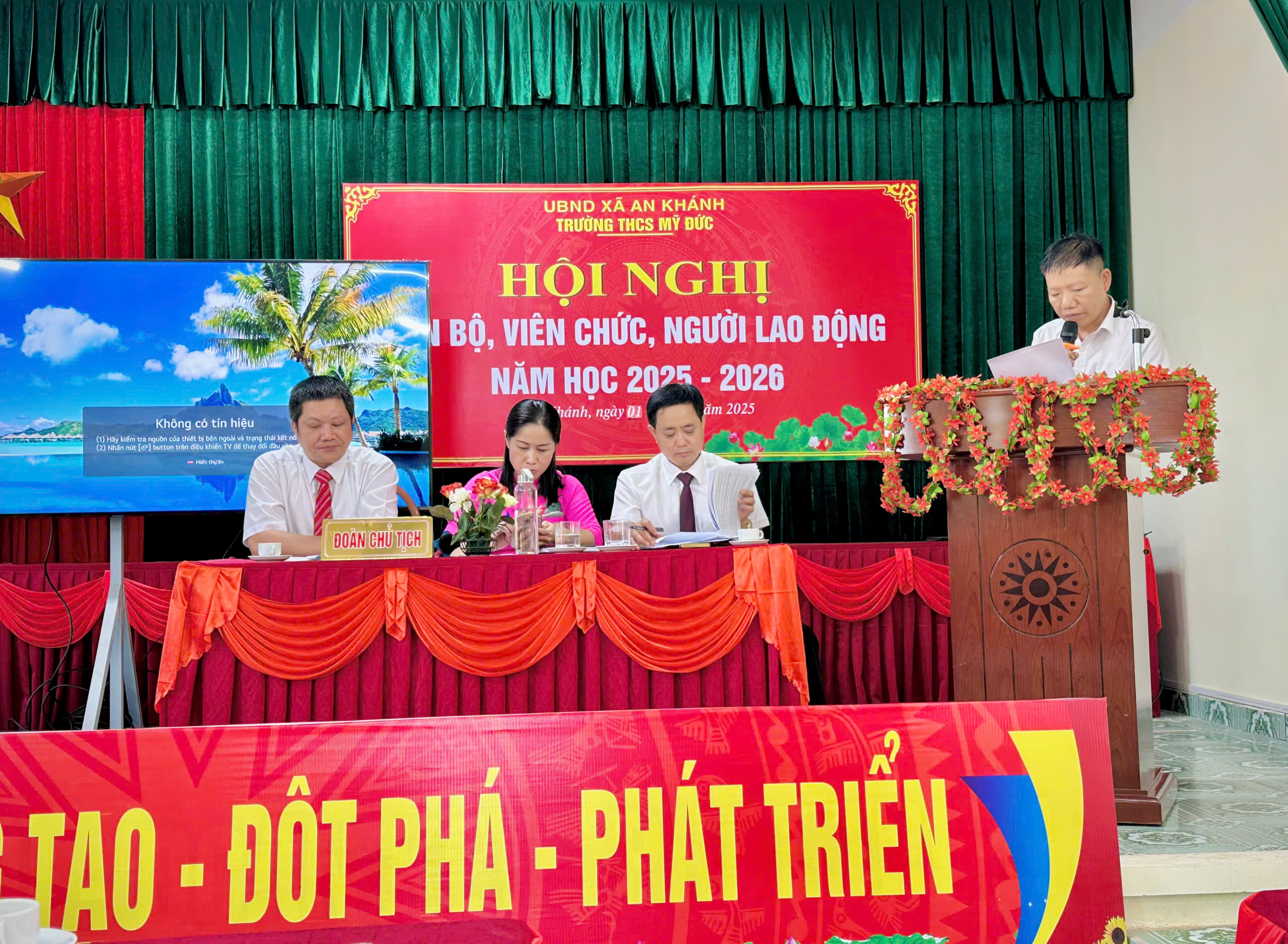 Thực hiện Luật dân chủ cơ sở số 10/2022/QH15; Nghị định số 04/2025/NĐ-CP của Chính phủ và các văn bản hướng dân thi hành; chiều ngày 01/10/2025, Trường THCS Mỹ Đức long trọng tổ chức Hội nghị Cán bộ, viên chức, người lao động năm học 2025 - 2026.