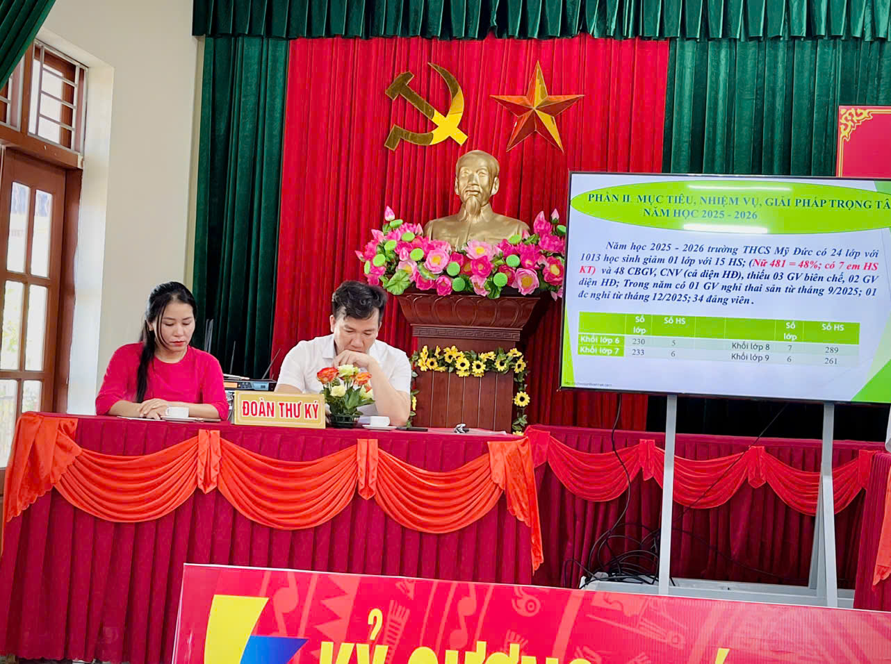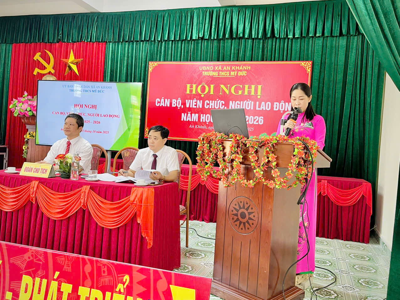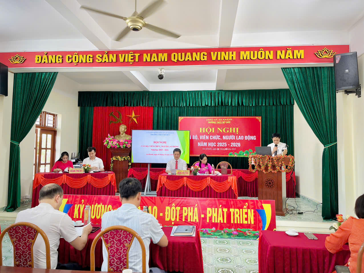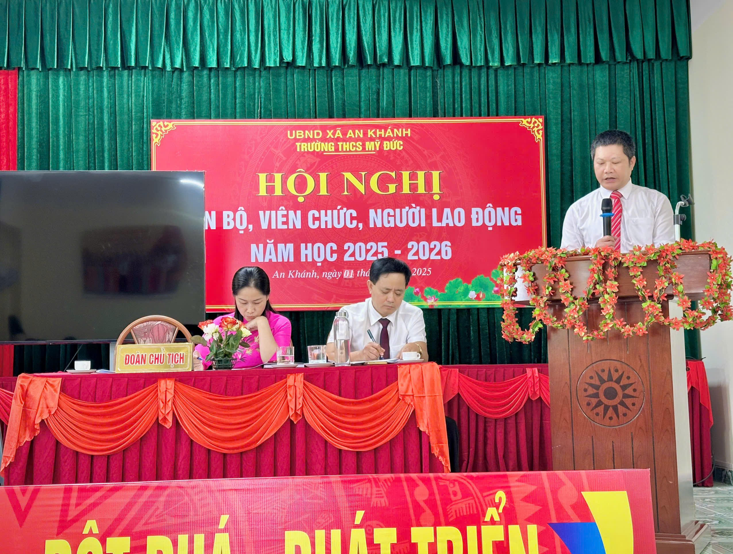 Thực hiện Luật dân chủ cơ sở số 10/2022/QH15; Nghị định số 04/2025/NĐ-CP của Chính phủ và các văn bản hướng dân thi hành; chiều ngày 01/10/2025, Trường THCS Mỹ Đức long trọng tổ chức Hội nghị Cán bộ, viên chức, người lao động năm học 2025 - 2026.