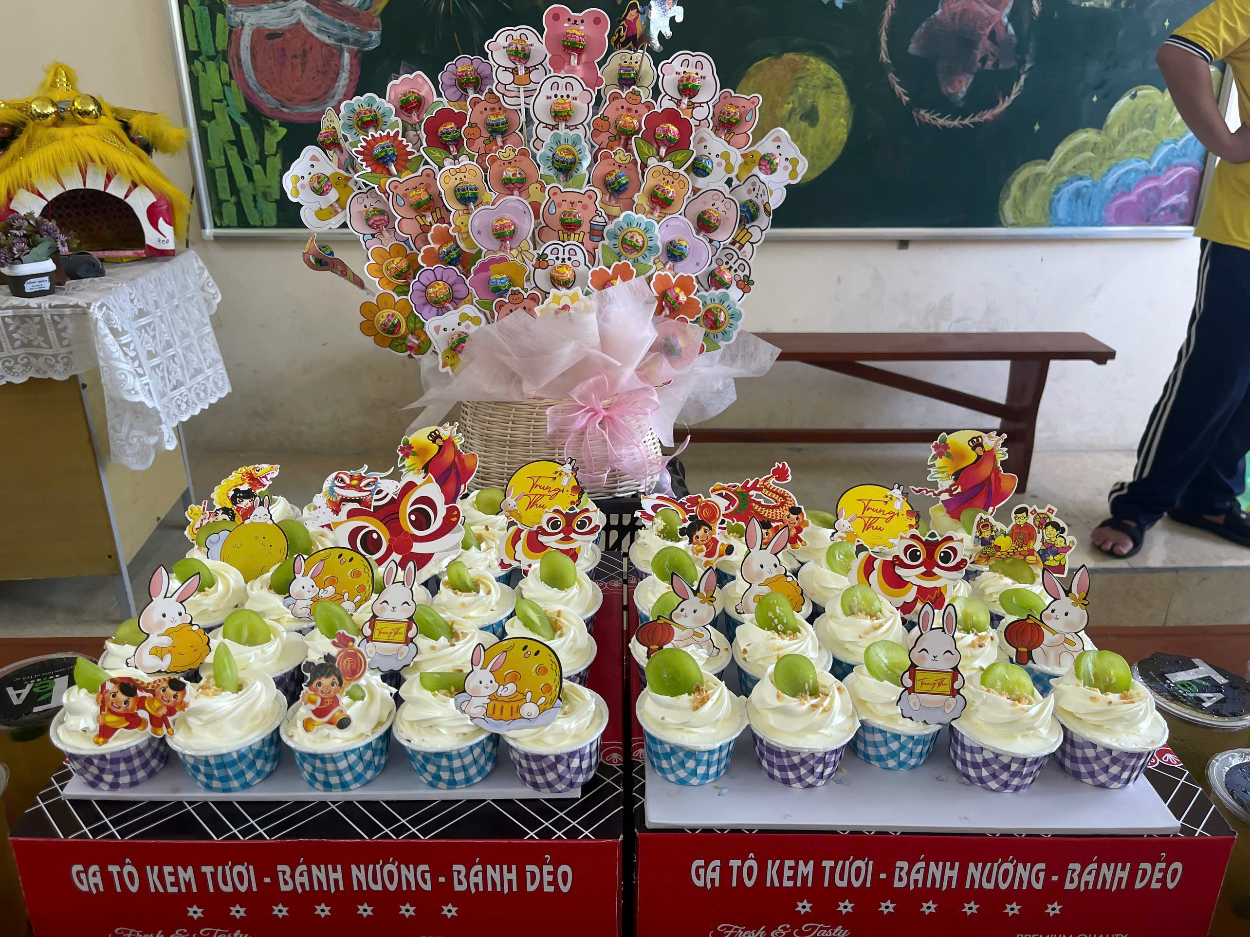 Mỗi lớp đều có cách trang trí riêng mang đậm màu sắc. Mâm cỗ Trung thu được các em tự tay sắp xếp thật đẹp mắt, nào là bánh nướng, bánh dẻo, chuối, bưởi, na, hồng…, xen lẫn những chiếc kẹo, hộp sữa xinh xắn – tất cả tạo nên một mâm cỗ đậm đà hương vị truyền thống.