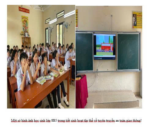 Thực hiện Kế hoạch tháng cao điểm đảm bảo trật tự an toàn giao thông (TTATGT) cho học sinh, lớp 8B5 tổ chức tuyên truyền, phổ biến và giáo dục pháp luật về ATGT cho các em học sinh trong tiết sinh hoạt tập thể.